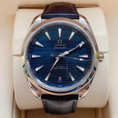 OMEGA/欧米茄瑞士手表 海马系列日历防水150m至臻天文台自动机械男士腕表 皮带蓝盘220.13.41.21.03.001