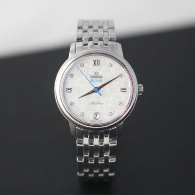 OMEGA/歐米茄瑞士手錶碟飛系列行事曆鑲鑽自動機械女士腕表鋼帶白盤424.10.33.20.55.004