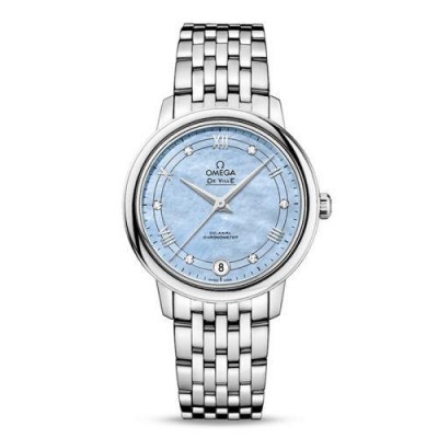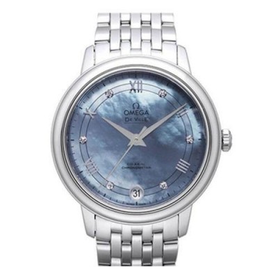 OMEGA/欧米茄瑞士手表 碟飞系列日历镶钻自动机械女士腕表 钢带蓝盘424.10.33.20.57.001