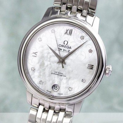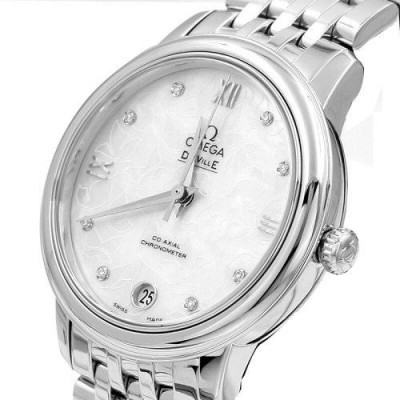 OMEGA/歐米茄瑞士手錶碟飛系列行事曆鑲鑽自動機械女士腕表鋼帶白盤424.10.33.20.55.001
