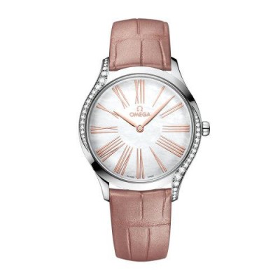 OMEGA/欧米茄瑞士手表 碟飞系列镶钻石英表气质女士腕表 皮带白盘428.18.36.60.05.002