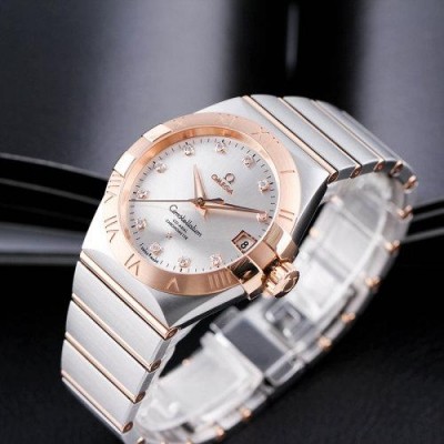 OMEGA/欧米茄瑞士手表 星座系列日历镶钻自动机械男士腕表 钢带银盘123.20.38.21.52.001