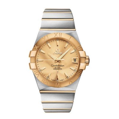 OMEGA/欧米茄瑞士手表 星座系列日历自动机械男士腕表 钢带金盘123.20.38.21.08.001