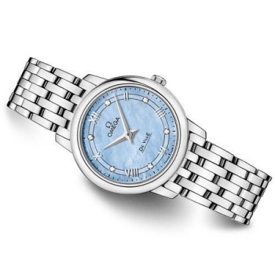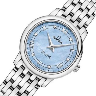 OMEGA/欧米茄瑞士手表 碟飞系列镶钻石英机芯女士腕表 钢带蓝盘424.10.27.60.57.001