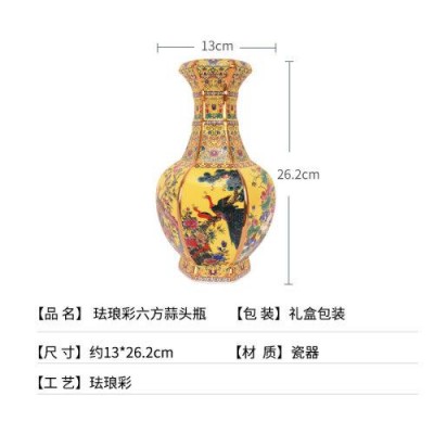 首頁 > 商務禮品 > 中藝盛嘉 > 中藝盛嘉景德鎮瓷器花瓶珐琅彩六方蒜頭瓶仿古手繪客廳擺件家居裝飾品