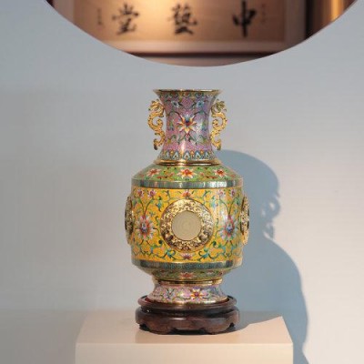 中藝盛嘉中藝堂收藏品張同祿景泰藍百年復興報喜瓶