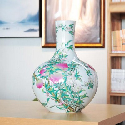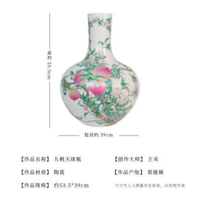 中艺盛嘉 中藝堂收藏品 王采 景德镇粉彩瓷 九桃天球瓶