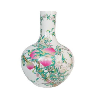 中藝盛嘉中藝堂收藏品王采景德鎮粉彩瓷九桃天球瓶
