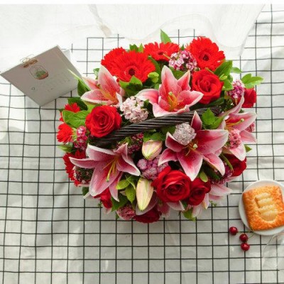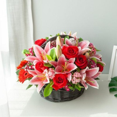 首頁 > 鮮花綠植 > 花禮 > 花禮/幸福滿溢/多頭百合2枝,卡羅拉玫瑰8枝,紅太陽花6枝/七夕情人節禮物鮮花/當日達