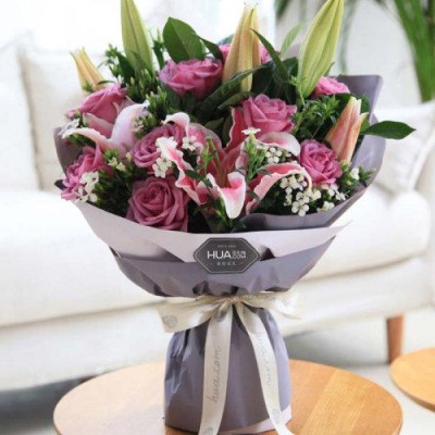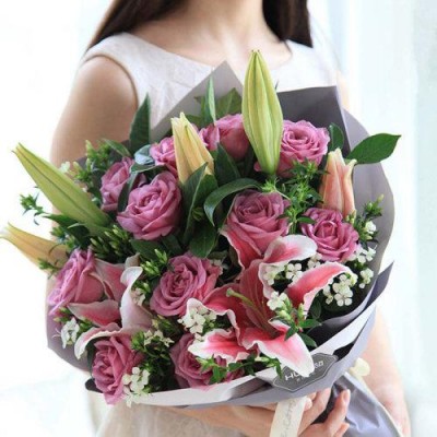首頁 > 鮮花綠植 > 花禮 > 花禮/浪漫香氣/11枝冷美人紫玫瑰,多頭粉百合2枝/七夕情人節禮物鮮花送人/提前1天預訂