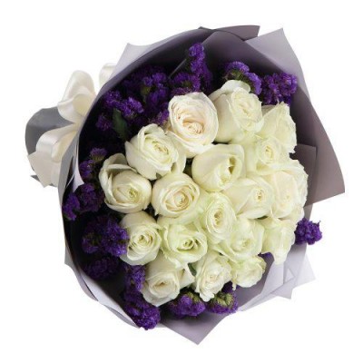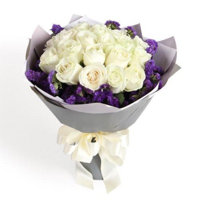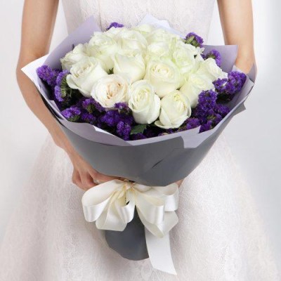 首頁 > 鮮花綠植 > 花禮 > 花禮/如初/19枝白玫瑰,紫色勿忘我5枝/七夕情人節禮物鮮花送人/當日達