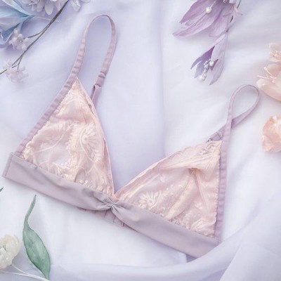首頁 > 內衣 > AuroraAlba > 【DesignerWomenwear】AURORAALBA/AuroraAlba2019夏季WATER LILY睡蓮-丁香紫隨型裁拼接藕粉色蕾絲3/4杯內衣