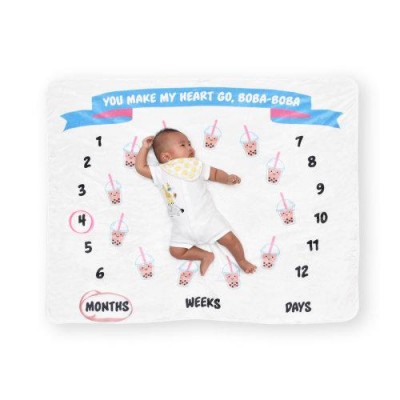 •初生寶寶成長紀念照拍攝背景毯子 - 波巴奶茶 (尺寸為120 x 120cm), 包括用作標記的色帶