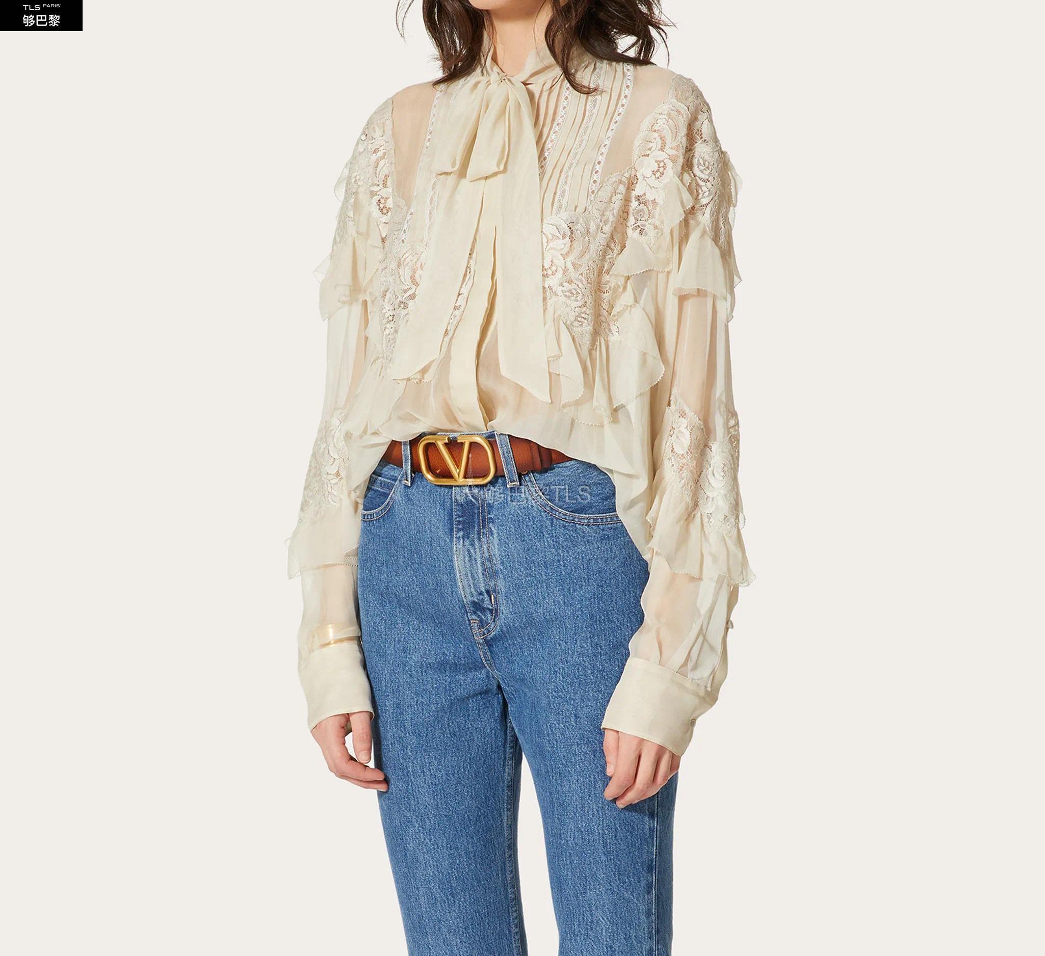 • 【包邮包税】 VALENTINO华伦天奴 21年春夏 女士 长袖衬衫 CHEMISIER EN MOUSSELINE VB0AB2902UPV57 预定商品1-3周发货