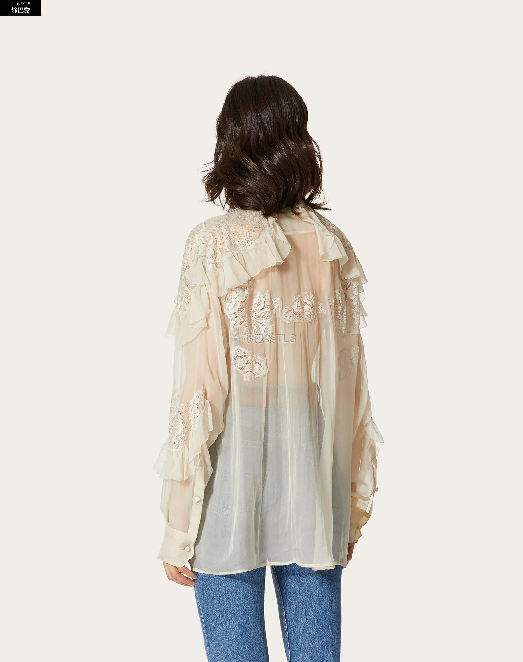 【包郵包稅】VALENTINO華倫天奴21年春夏女士長袖襯衫CHEMISIER EN MOUSSELINE VB0AB2902UPV57預定商品1-3周發貨