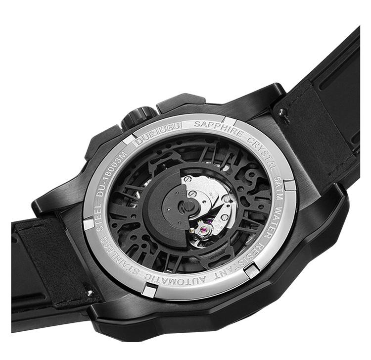 DURIUEU/杜裏手錶進口機芯自動機械表商務時尚潮流男士腕表黑皮帶紅線黑盤印紅DU-18001MEXHEEH2全球聯保