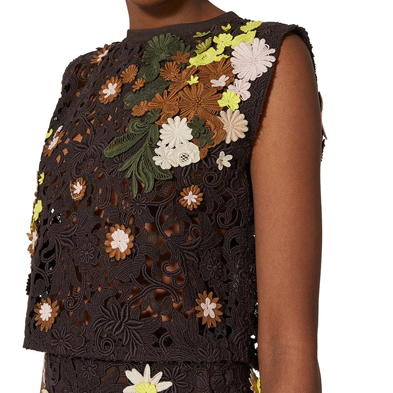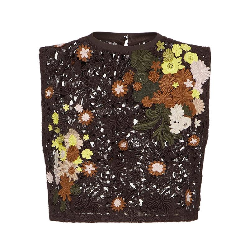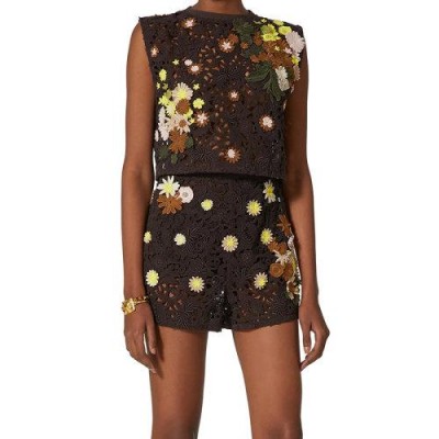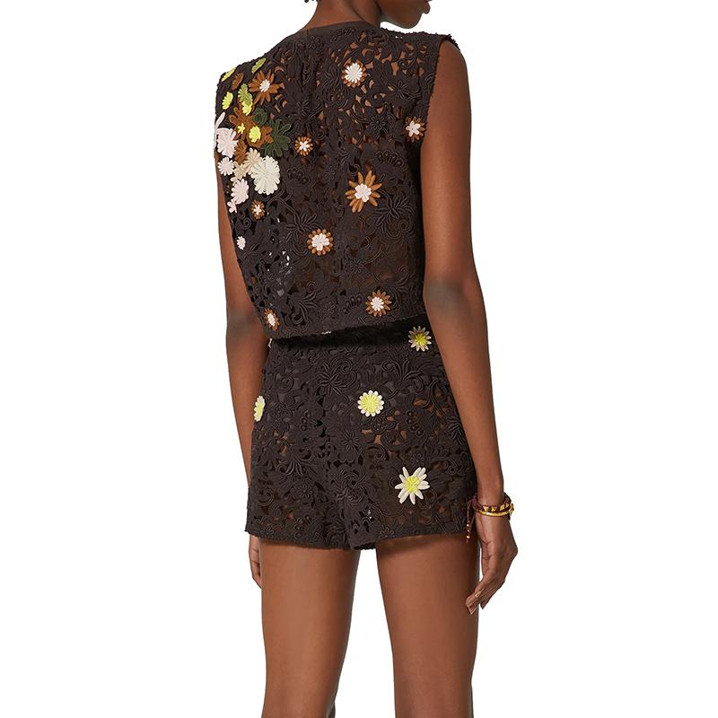 【包稅】Valentino/華倫天奴21年春夏新款女士烏木色/多色棉質繡花花卉瑪格麗特上衣VB0AE5X03QGW39