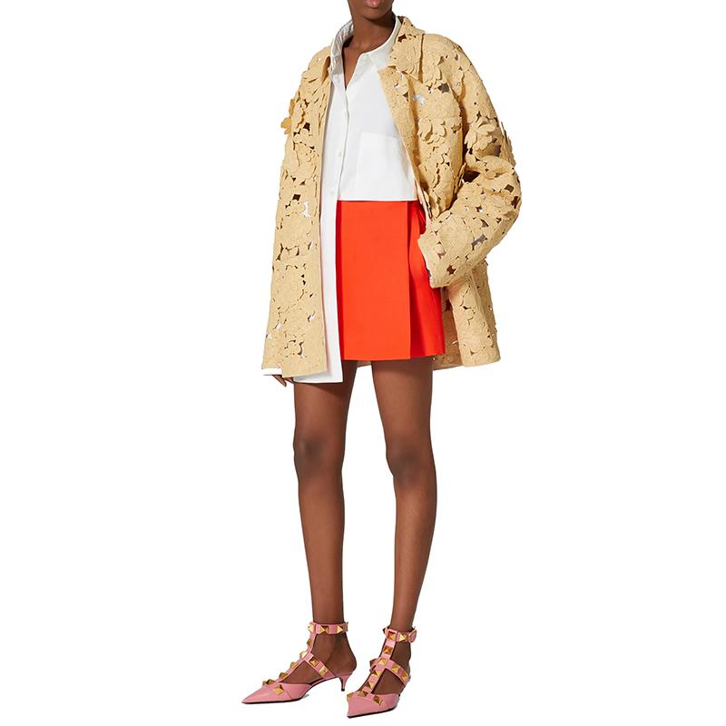 【包稅】Valentino/華倫天奴21年春夏新款女士螢光柳丁羊毛彈力縫製縐紗半身裙VB0RA7P06BSO14