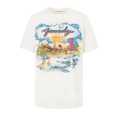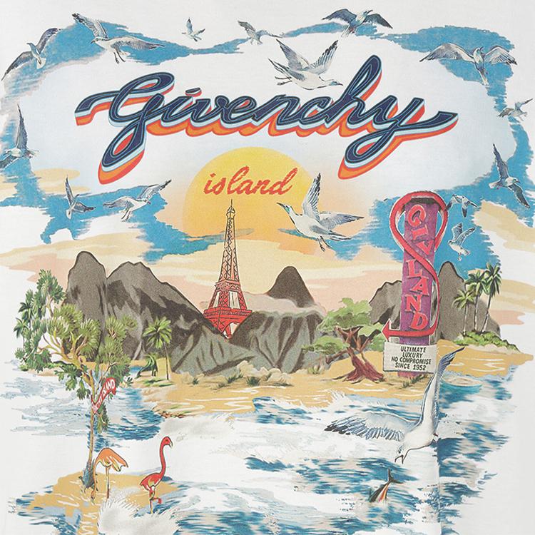 象牙色针织T恤,正面饰有多色GIVENCHY Island印花。