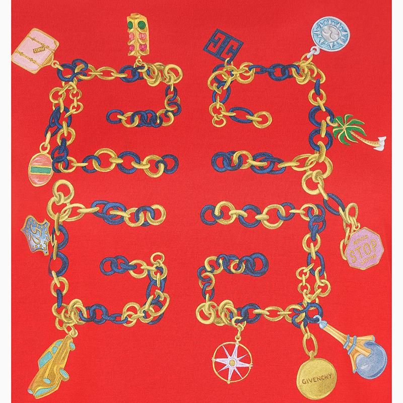 芙蓉红色针织T恤,正面饰有多色4G Charms印花。