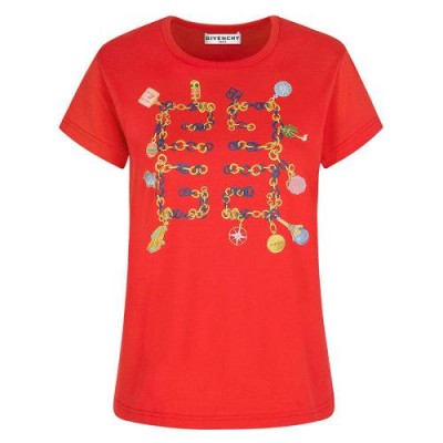 【包税】Givenchy/纪梵希 2021年新款 女士芙蓉红色棉质修身T恤BW707Y3Z4Q-626