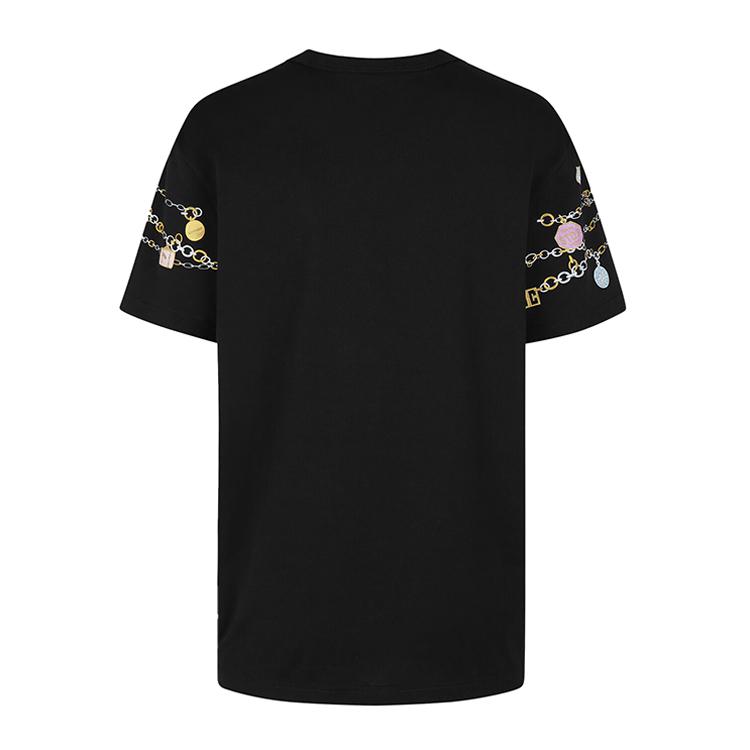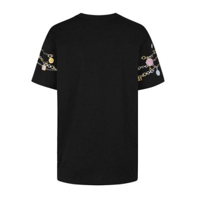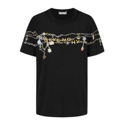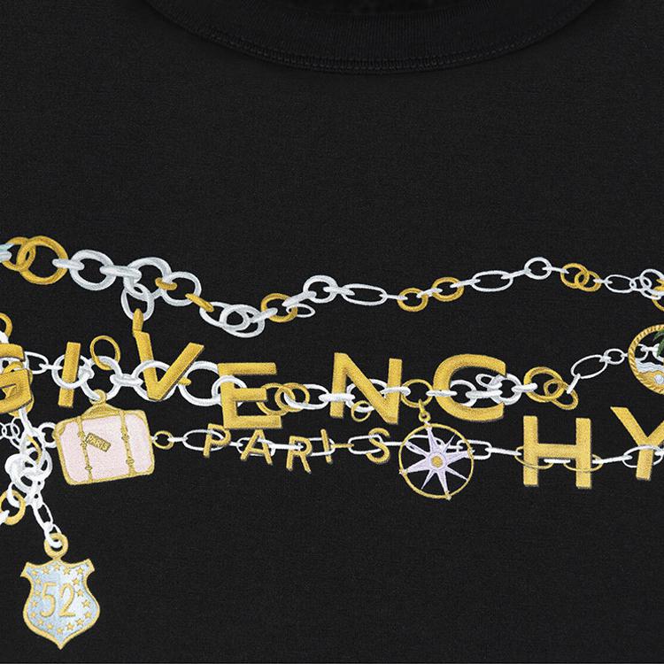 黑色针织T恤,胸前和衣袖饰有多色GIVENCHY Charms印花。