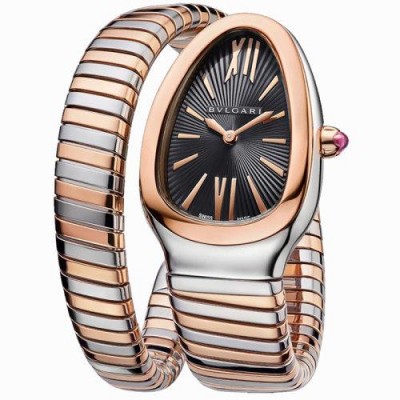 【包税】预定2-3周 BVLGARI/宝格丽 一个螺旋形表壳和18K金玫瑰金和精钢表链 黑色不透明表盘 SERPENTI TUBOGAS石英手表 35毫米102123