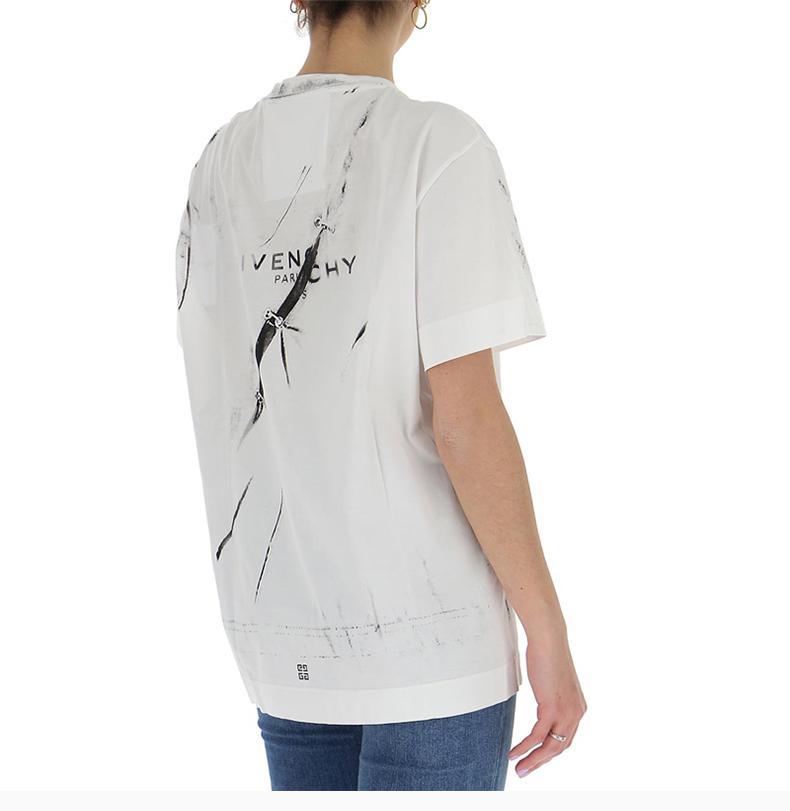【预计两周左右发货】GIVENCHY 纪梵希 女士 服装 21春夏 圆领白色视觉陷阱效果棉质T恤 女士短袖T恤