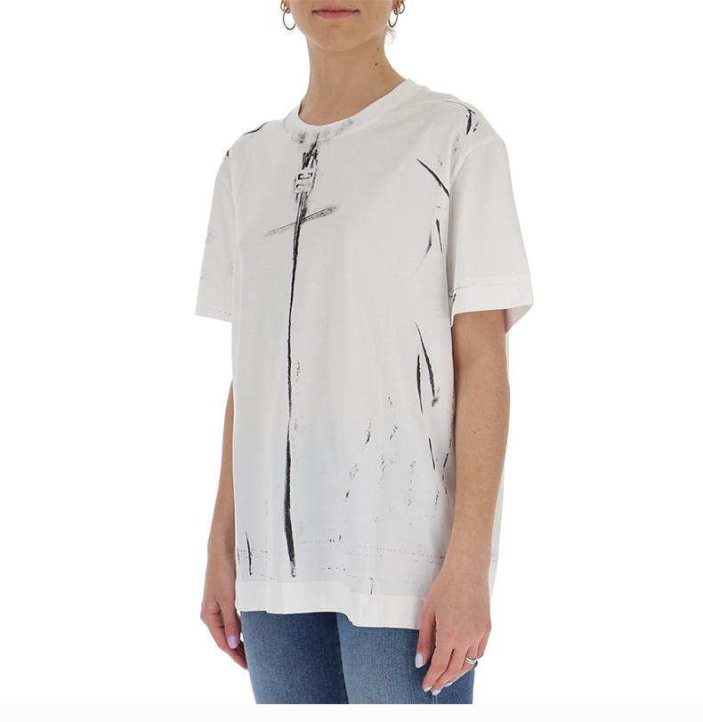 【預計兩周左右發貨】GIVENCHY紀梵希女士服裝21春夏圓領白色視覺陷阱效果棉質T恤女士短袖T恤