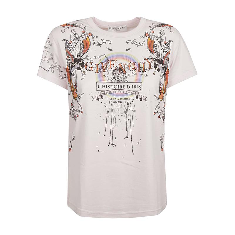 【包郵包稅】Givenchy/紀梵希女裝圖案裝潢女士淡粉色棉質時尚圓領春夏短袖T恤BW707Y3Z3V-680