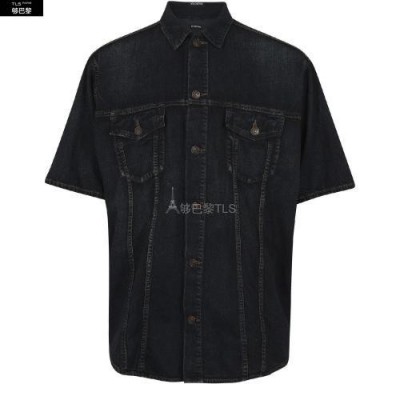 【包郵包稅】BALENCIAGA巴黎世家21年春夏男士夾克輕便日本牛仔襯衫BAL3WD42BLU預定商品1-3周發貨