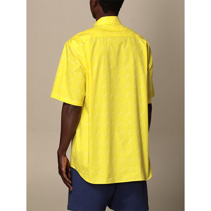 Balenciaga/巴黎世家 21春夏 男士 短袖衬衫 满版字母logo印花 黄色 534332TBL96 7201【现货】