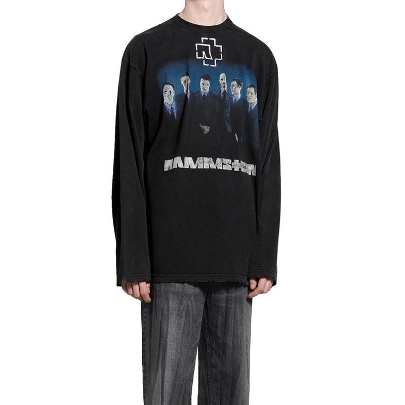 【包税】Balenciaga/巴黎世家 2021年新款 男士黑色复古印花平纹针织Boxy Rammstein长袖T恤651796TLV511000