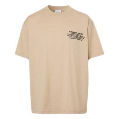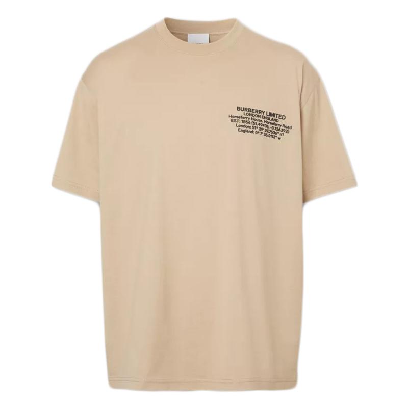 【包稅】BURBERRY/博柏利21年春夏新款男士柔黃褐色超大號純棉地理座標T恤80432751