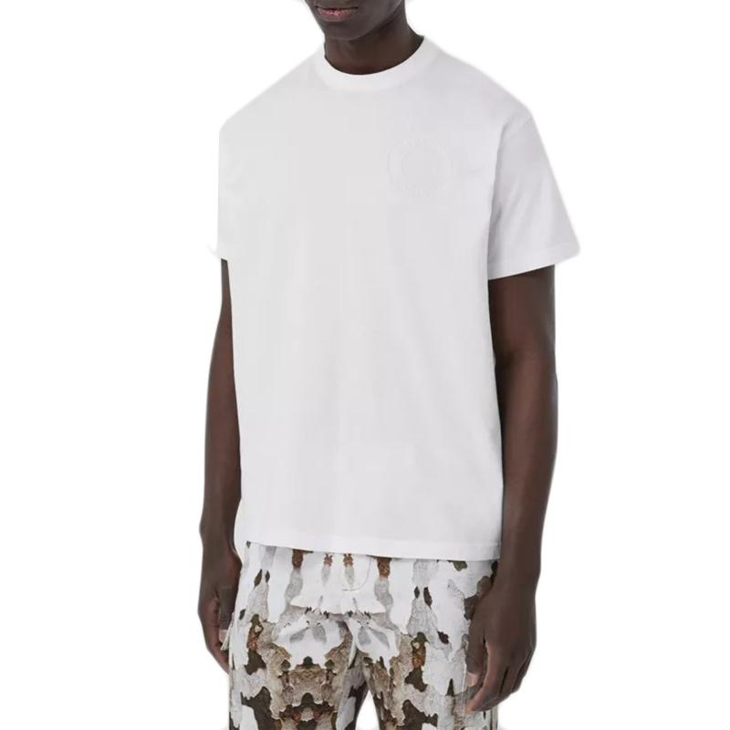 【包稅】BURBERRY/博柏利21年春夏新款男士白色徽標圖案棉質寬鬆T恤衫80422331