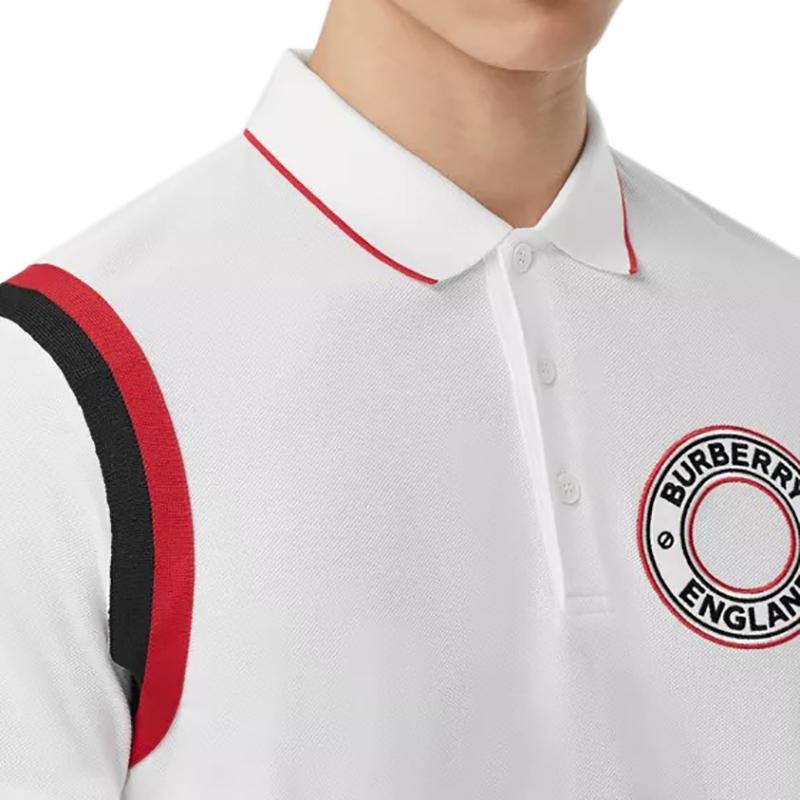 【包税】BURBERRY/博柏利 男士白色饰有徽标贴花的棉质piqué短袖POLO衫80370491