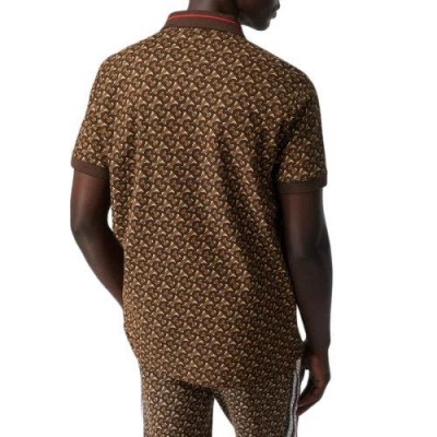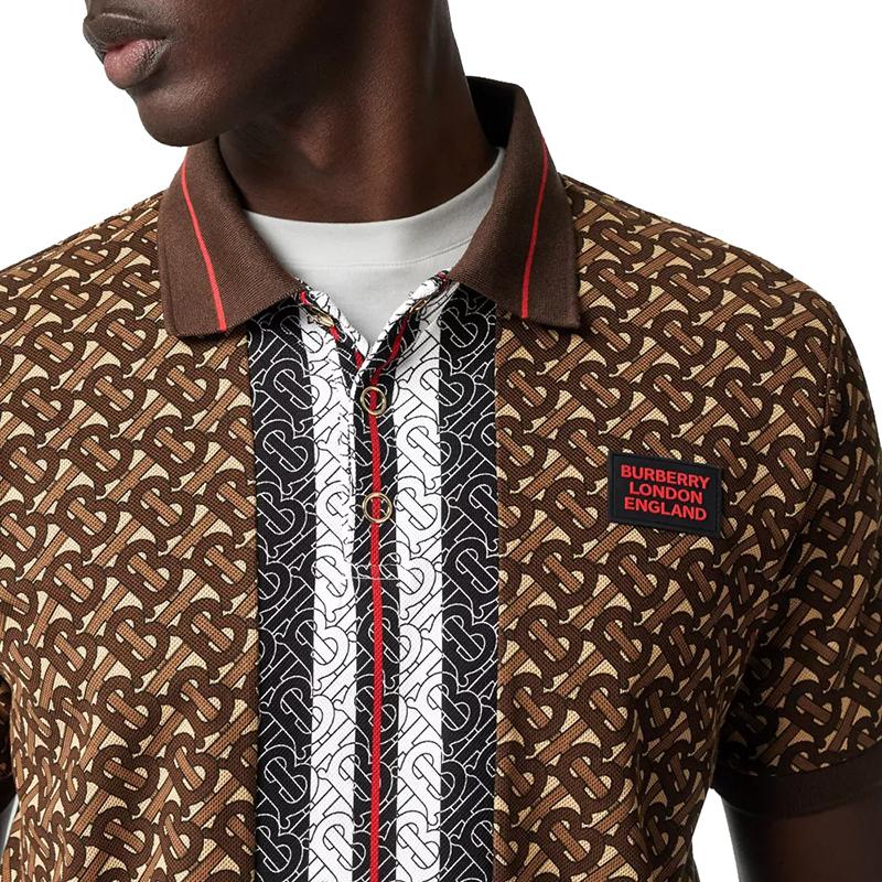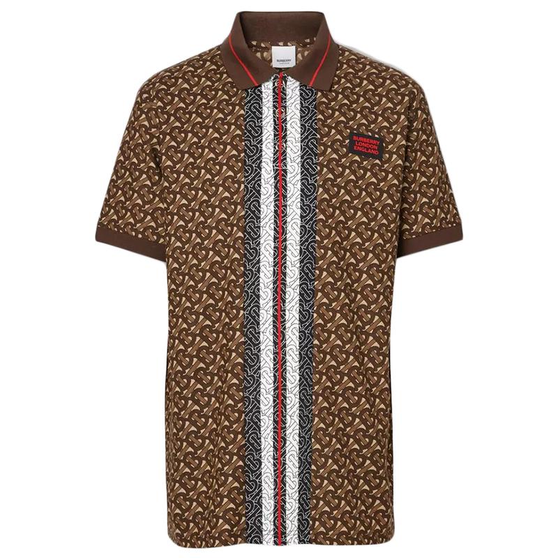 【包税】BURBERRY/博柏利 经典款 男士棕色棉质会标条纹piqué短袖polo衫80182621