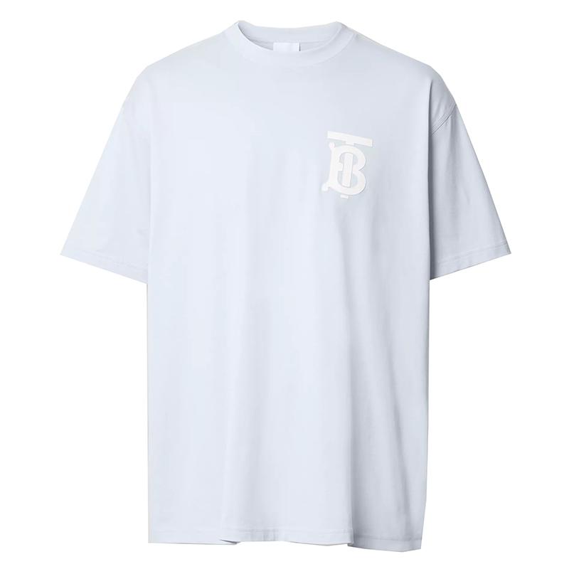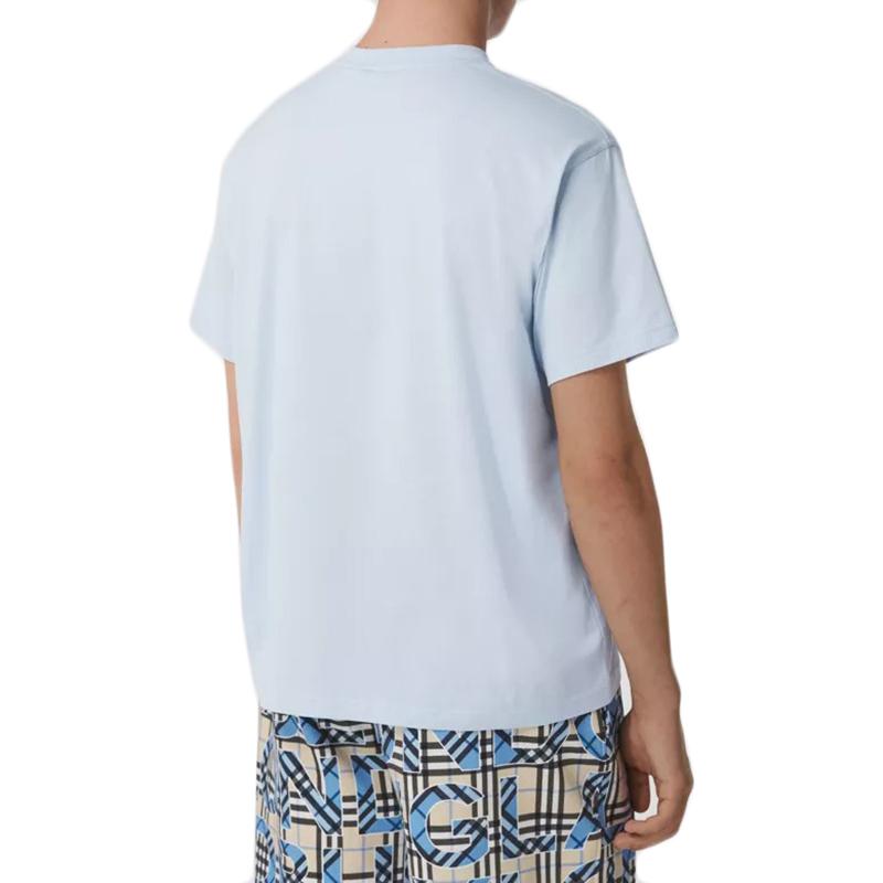 【包稅】BURBERRY/博柏利經典款男士淺藍色專屬標識圖案棉質寬鬆T恤衫80400621