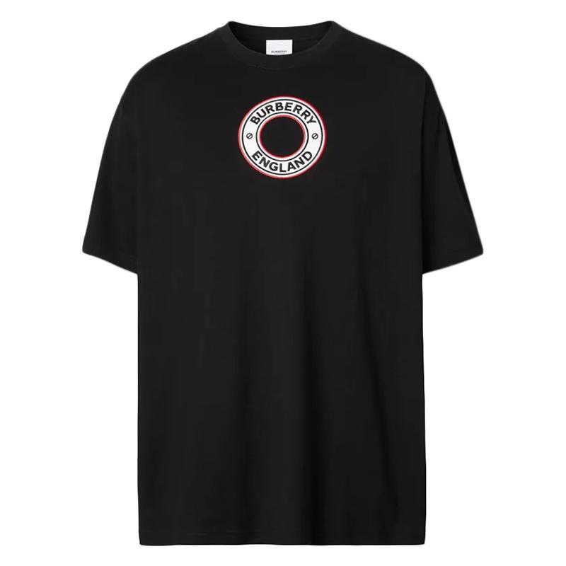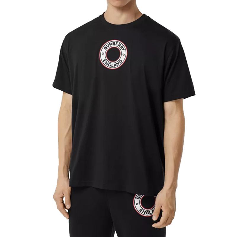 【包税】BURBERRY/博柏利 21年春夏新款 男士黑色徽标图案嵌花棉质宽松 T 恤衫80370471
