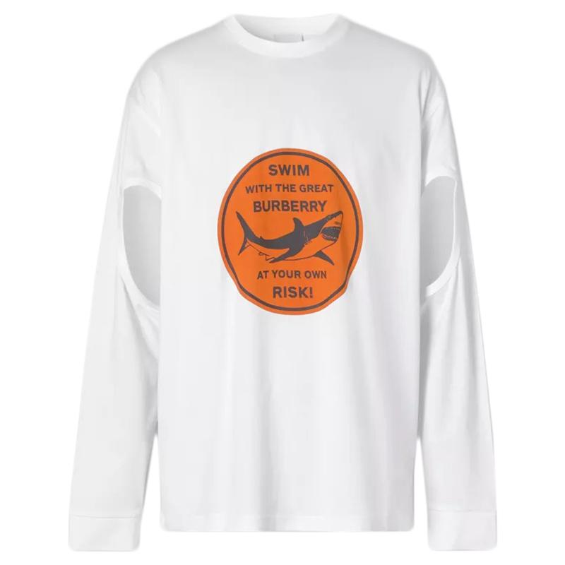 【包稅】BURBERRY/博柏利21年春夏款男士白色鏤空衣袖鯊魚圖案棉質上衣45676361