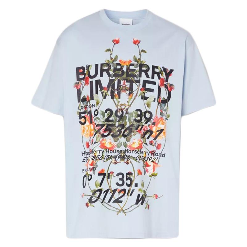 【包稅】BURBERRY/博柏利21年春夏新款男士淺藍色蒙太奇印花棉質寬鬆T恤衫80374681