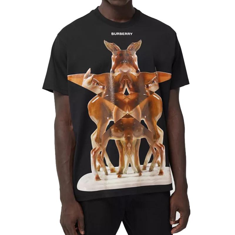 【包税】BURBERRY/博柏利 男士黑色万花筒印花棉质宽松 T 恤80370561