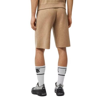 【包税】BURBERRY/博柏利 21年春夏新款 男士浅咖啡色专属标识图案羊绒抽绳短裤80393031