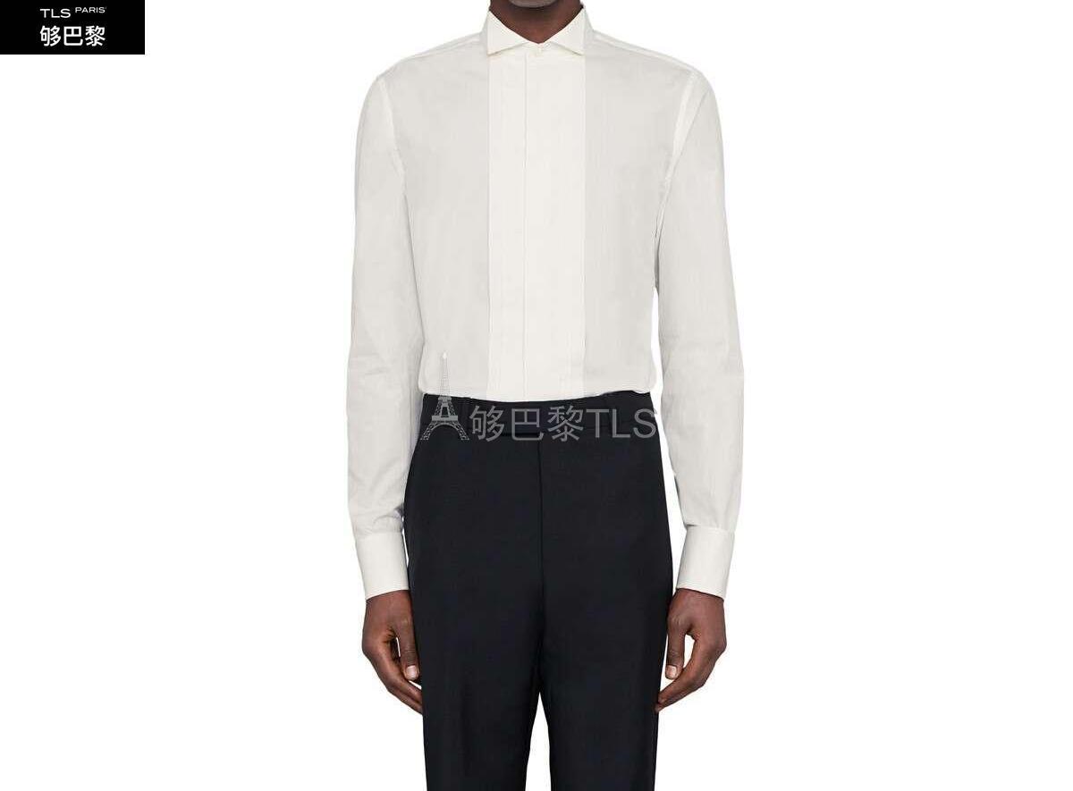这款优雅正装衬衫采用棉府绸材质,正面饰有针裥细节。正装剪裁和高领设计让这款单品更具整体设计感。