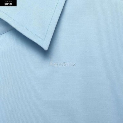 这款府绸衬衫采用柔和浅蓝色调。弧形下摆和法式翻领为整体造型增添时尚感。