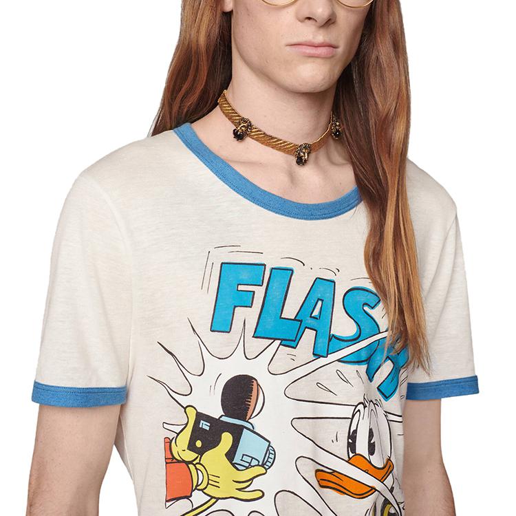 GUCCI/古驰 唐老鸭印花棉麻混纺男士短袖T恤 645302 XJC8W