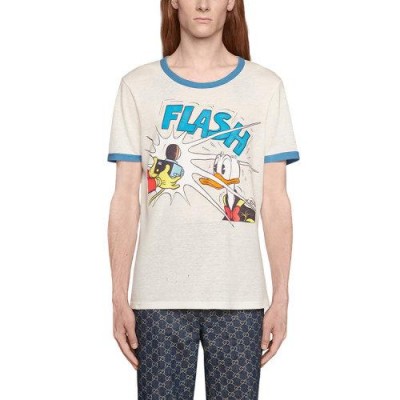 GUCCI/古馳唐老鴨印花棉麻混紡男士短袖T恤645302 XJC8W