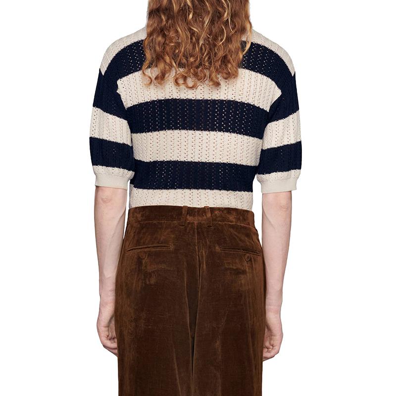条纹风格完善了Epilogue系列的服装,例如,这款深蓝色和米白色条纹羊毛polo衫,带有系带项圈和皮绳,带来意想不到的触感。蓝色和红色GG细节面板绣有标志性的颜色组合,增强了正面效果。