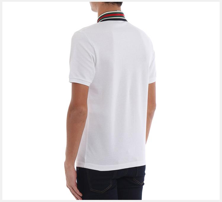 GUCCI/古馳棉質飾條紋織帶虎頭刺繡商務時尚休閒polo衫男士短袖T恤545714 XJAGU