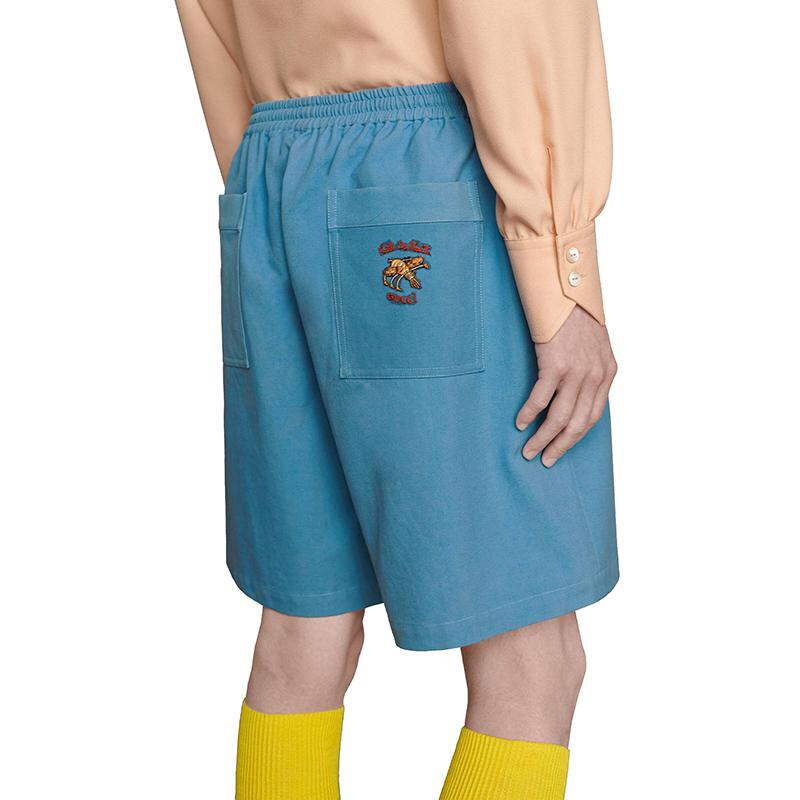 【包税】GUCCI/古驰 2021年新款男士蓝色帆布棉短裤 659825ZAGP54371